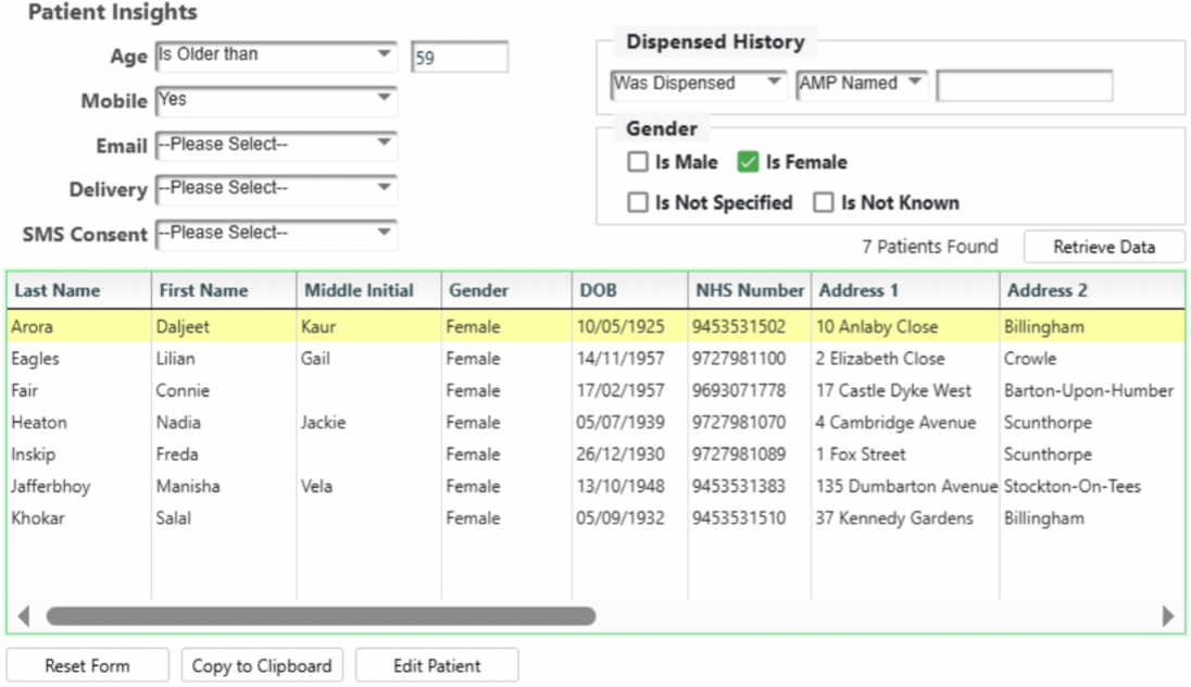 Gain valuable visibility with the new Patient List Generator. Create and export targeted patient lists based on age, delivery flag, consent, or medicines dispensed — supporting better patient engagement and reporting.